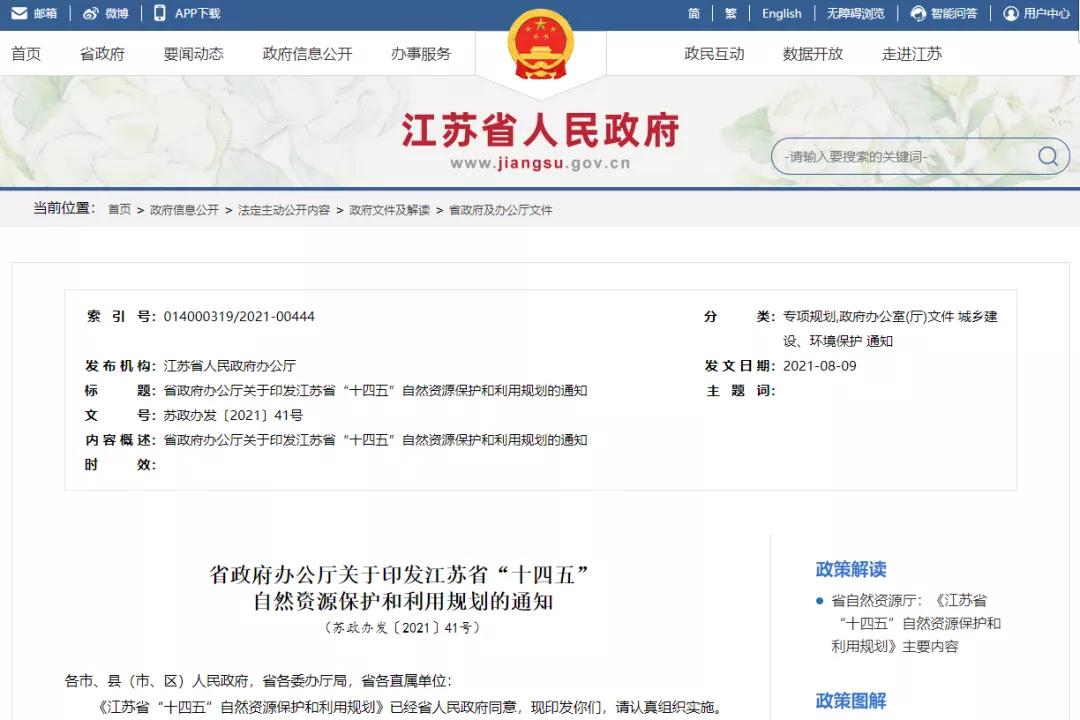 《江蘇省“十四五”自然資源保護(hù)和利用規(guī)劃》