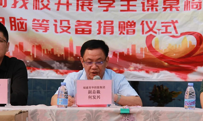 在此次的捐贈(zèng)儀式上,集團(tuán)副總裁何發(fā)興代表總裁陳育科向全體教職員工及莘莘學(xué)子表示衷心的問候;并希望同學(xué)們能夠充分發(fā)揮助學(xué)資源的作用,樹立自強(qiáng)不息的精神和立志成才的強(qiáng)大動(dòng)力,堅(jiān)定理想信念和遠(yuǎn)大抱負(fù),做到求知和修養(yǎng)的統(tǒng)一,珍惜來之不易的學(xué)習(xí)環(huán)境,珍惜寶貴的少志年華,以刻苦自律的精神,學(xué)好新知識(shí)、掌握新本領(lǐng),增長(zhǎng)新才干。