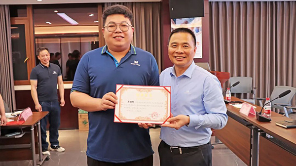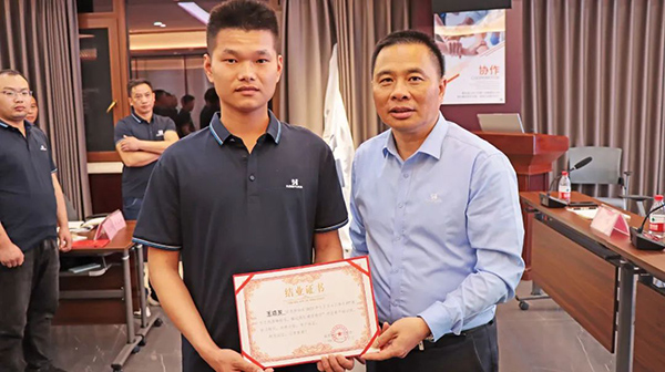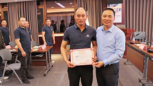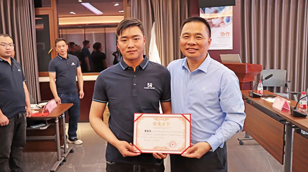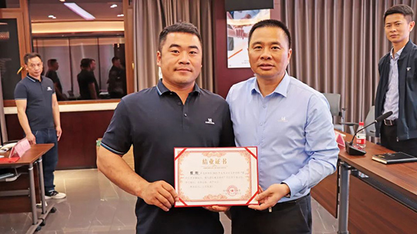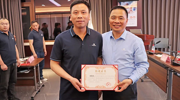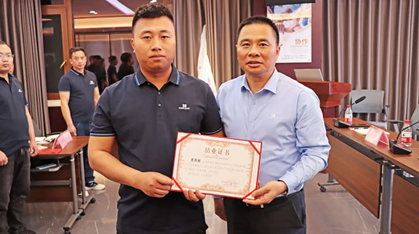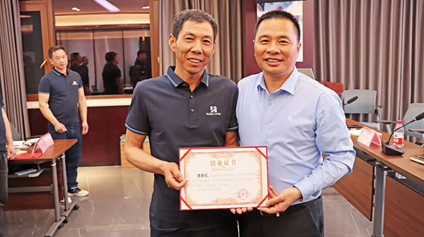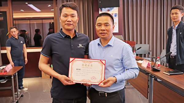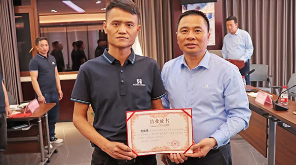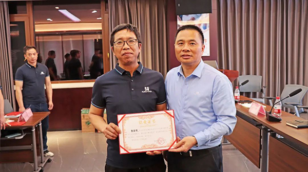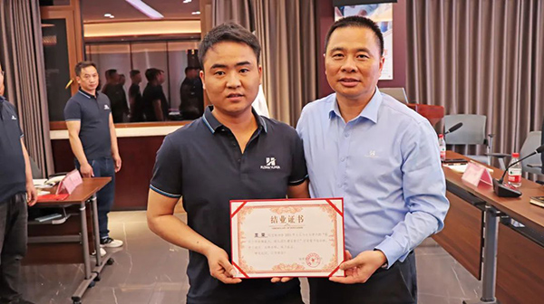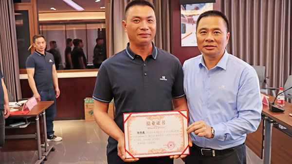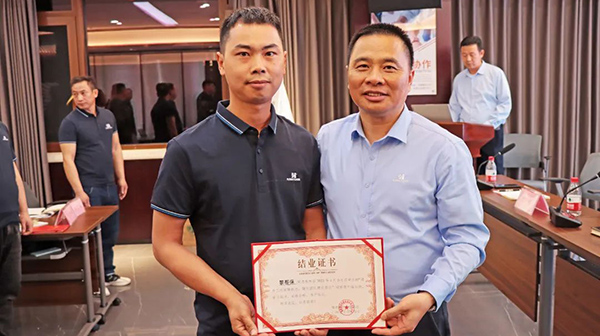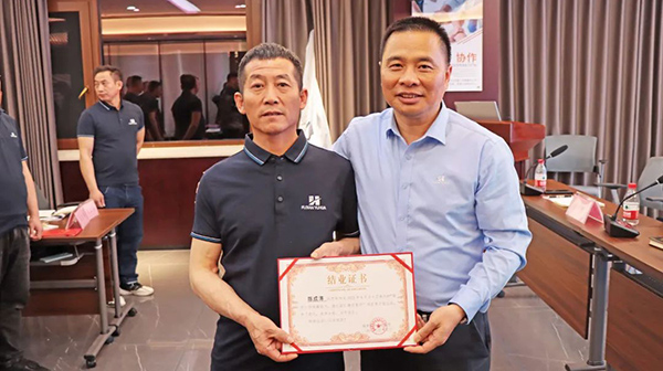 順利結(jié)業(yè) 全體學(xué)員在總裁的帶領(lǐng)下紛紛在集團(tuán)旗幟上簽署自己的名字,并由總裁將滿載榮譽的旗幟授給學(xué)員代表,愿大家懷著這份榮譽,學(xué)有所成,將學(xué)習(xí)成果帶入工作中,充分發(fā)揮自己的價值而努力!最后,在陳總裁親自為每一位學(xué)員頒發(fā)培訓(xùn)結(jié)業(yè)證書,合影留念中2023年度第一批項目骨干培訓(xùn)圓滿落幕。