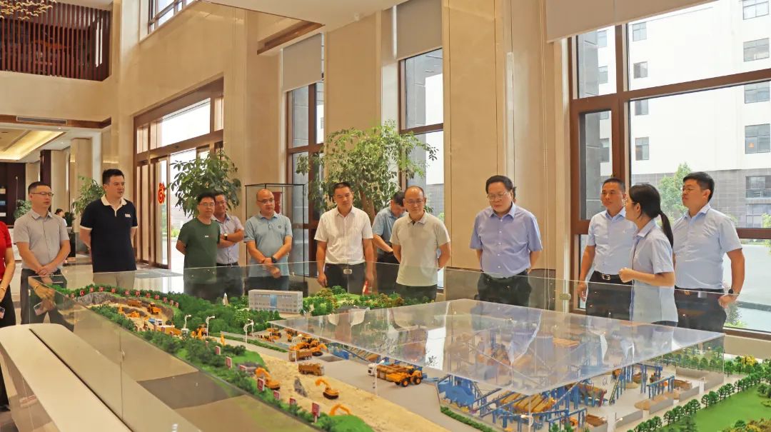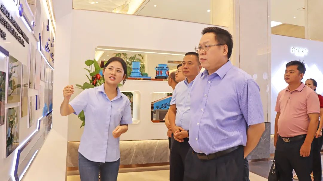 7月27日,由凌云縣人大常委會(huì)主任韋將良,縣委常委、縣人民政府副縣長石永存帶領(lǐng)考察團(tuán)一行領(lǐng)導(dǎo)蒞臨育華集團(tuán)參觀指導(dǎo),集團(tuán)總裁陳育科、副總裁陳學(xué)群等高層領(lǐng)導(dǎo)全程陪同并對考察團(tuán)的到訪表示熱烈的歡迎。 01 參觀集團(tuán)文化展示區(qū) 在陳總裁的親自陪同下,考察團(tuán)一行領(lǐng)導(dǎo)先后來到育華集團(tuán)綠色礦山項(xiàng)目現(xiàn)場和總部文化展示區(qū)進(jìn)行參觀,總裁助理李江霞就育華集團(tuán)的企業(yè)發(fā)展歷程、生產(chǎn)產(chǎn)品類別、全球項(xiàng)目分布、發(fā)明專利項(xiàng)目、榮獲的社會(huì)榮譽(yù)及集團(tuán)旗下育華重工生產(chǎn)的礦山機(jī)械設(shè)備做了深入的介紹,在展廳中,考察團(tuán)一行領(lǐng)導(dǎo)對育華集團(tuán)歷經(jīng)二十載高速發(fā)展所取得的成績給予高度肯定和贊揚(yáng)。